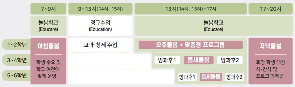- 아침돌봄: 7~9시 학생 수요 및 학교 여건에 맞게 운영