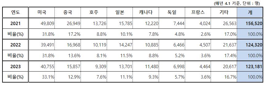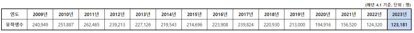 교육부에서 발표한 2023년 국외 고등교육기관 한국인 유학생 현황을 알려드립니다.